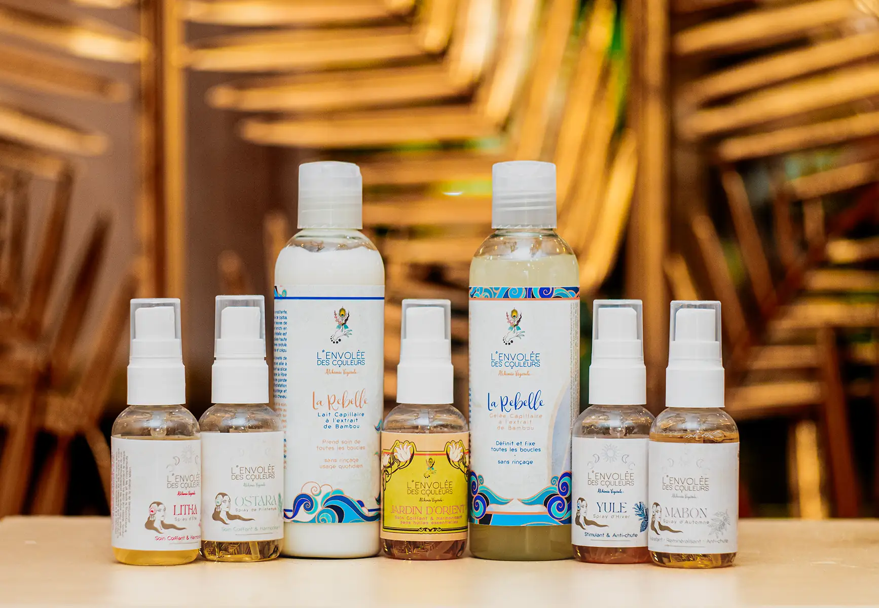 Sprays hydratants légèrement fixants enrichis d’acide hyaluronique et aquaxyl, ils se déclinent dans les gammes Jardin d’Orient, Ostara, Litha, Mabon & Yule. Ils s’appliquent après séchage pour discipliner les frisottis et permettre une meilleure tenue de la coiffure tout au long de la journée. Ils ont également la capacité de retenir l'eau, évitant ainsi le déssèchement de la fibre capillaire.
