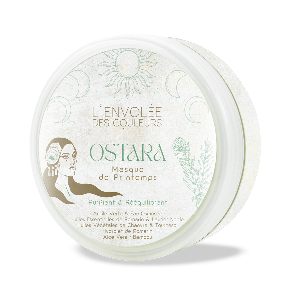 À base d’Argile Verte, Romarin, Laurier Noble, Bambou et Aloe Vera, ce masque saisonnier apporte un meilleur équilibre du cuir chevelu et du cheveu lors du passage vers le Printemps. OSTARA aide à réguler le sébum et les problématiques hormonales, à diminuer les chutes de cheveux liées à un déséquilibre du foie accentué par l’énergie montante du Printemps. Ce masque absorbe les particules de pollution, silicones et filmogènes aidant ainsi à dépolluer le cuir chevelu et la fibre capillaire pour les préparer à recevoir la coloration végétale.