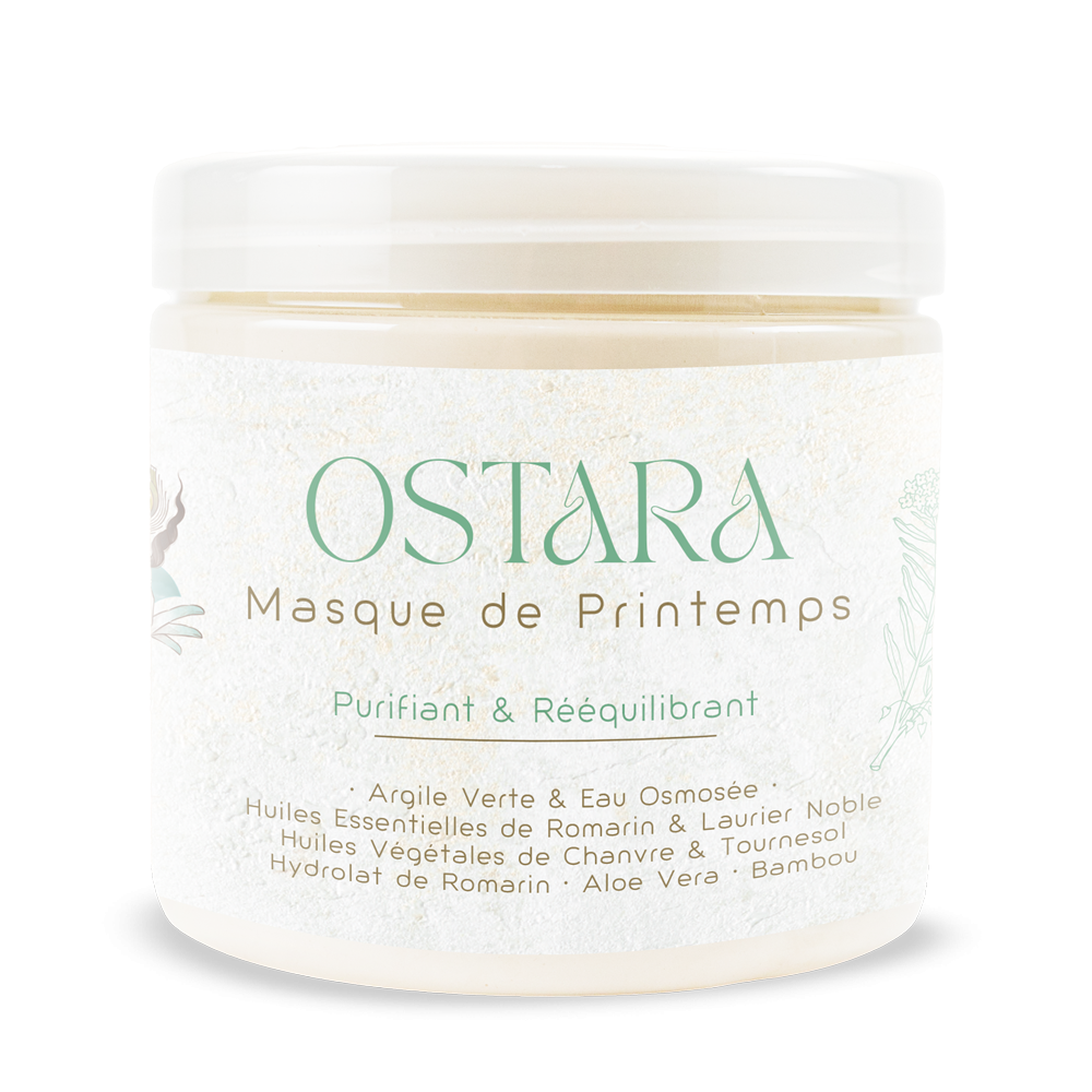 À base d’Argile Verte, Romarin, Laurier Noble, Bambou et Aloe Vera, ce masque saisonnier apporte un meilleur équilibre du cuir chevelu et du cheveu lors du passage vers le Printemps. OSTARA aide à réguler le sébum et les problématiques hormonales, à diminuer les chutes de cheveux liées à un déséquilibre du foie accentué par l’énergie montante du Printemps. Ce masque absorbe les particules de pollution, silicones et filmogènes aidant ainsi à dépolluer le cuir chevelu et la fibre capillaire pour les préparer à recevoir la coloration végétale.