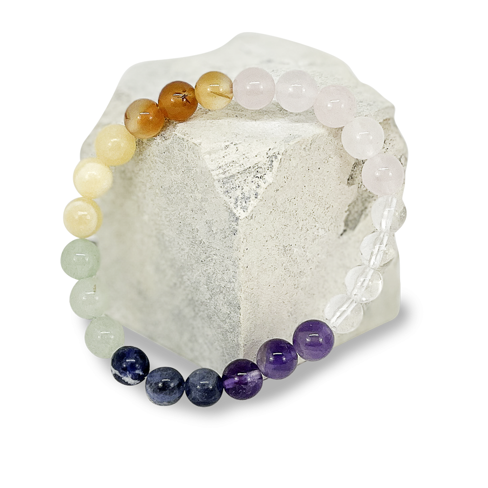 Bracelet 7 Chakras 8mm. Harmonisez vos centres énergétiques. Chaque pierre représente un chakra pour l'équilibre et le bien-être.