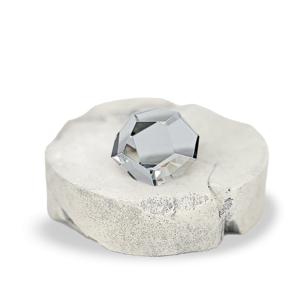 Le dodécaèdre en Cristal de Roche relie les pouvoirs de la géométrie sacrée aux pouvoirs du minéral. Il amplifie toutes les propriétés et les vertus attribuées au Cristal de Roche.