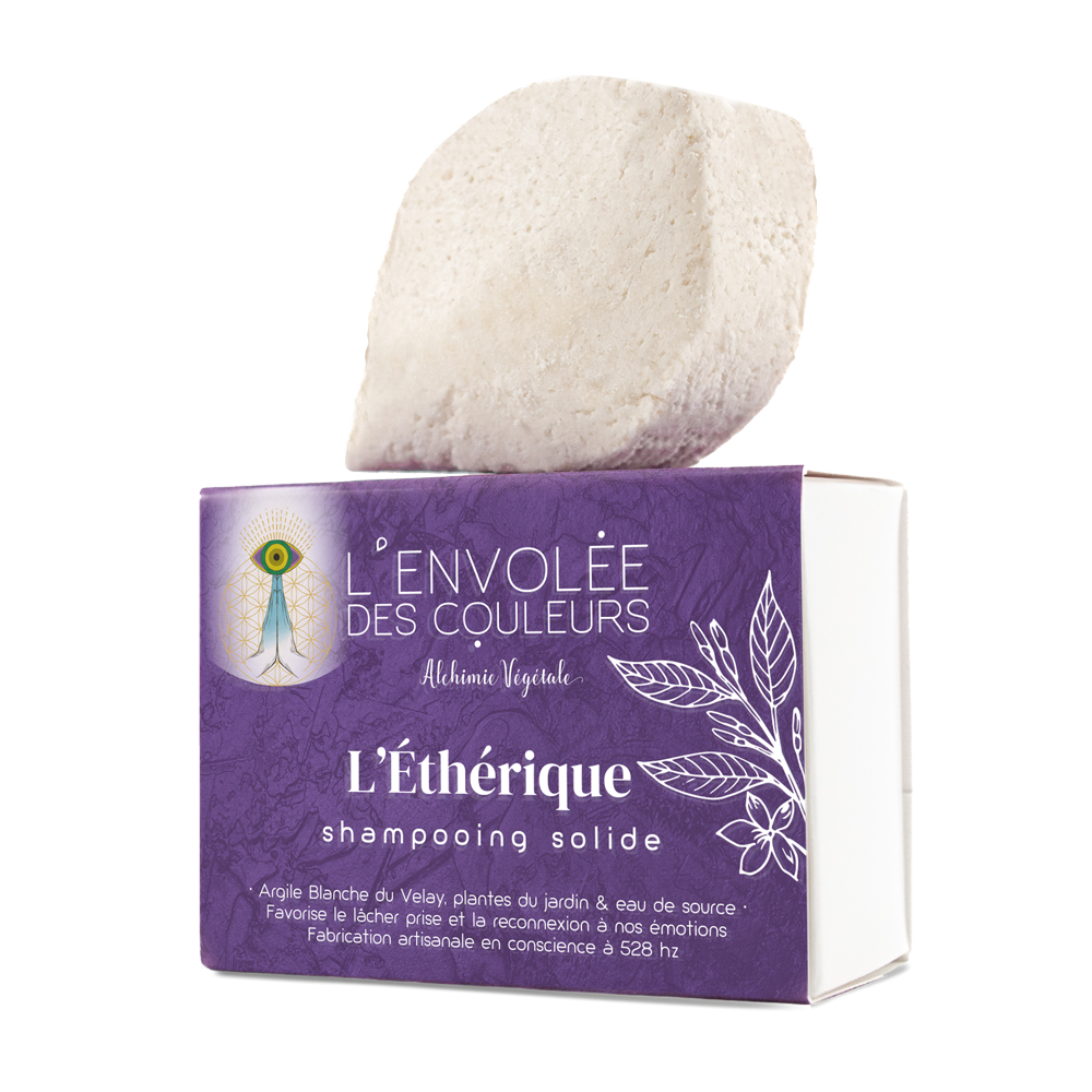 Spécialement formulé pour les cheveux et cuirs chevelus à tendance sèche, le shampooing solide l’Éthérique est composé d’Argile Blanche du Velay, d’Huile d’Olive, d’extrait de Fleur d’Immortelle, d’Huile de Graines de Pracaxi et d’Huile Essentielle de Fleur d’Orange & Ylang-Ylang. Grâce à sa synergie de minéraux et plantes, le shampooing solide L’Éthérique vient hydrater, adoucir et régénérer le cuir chevelu, protéger des rayonnements ultraviolets et solaires. Elle est riche de propriétés antispasmodiques, tonifiantes, antiseptiques, équilibrantes et combat les colères pour déclencher la joie de vivre.